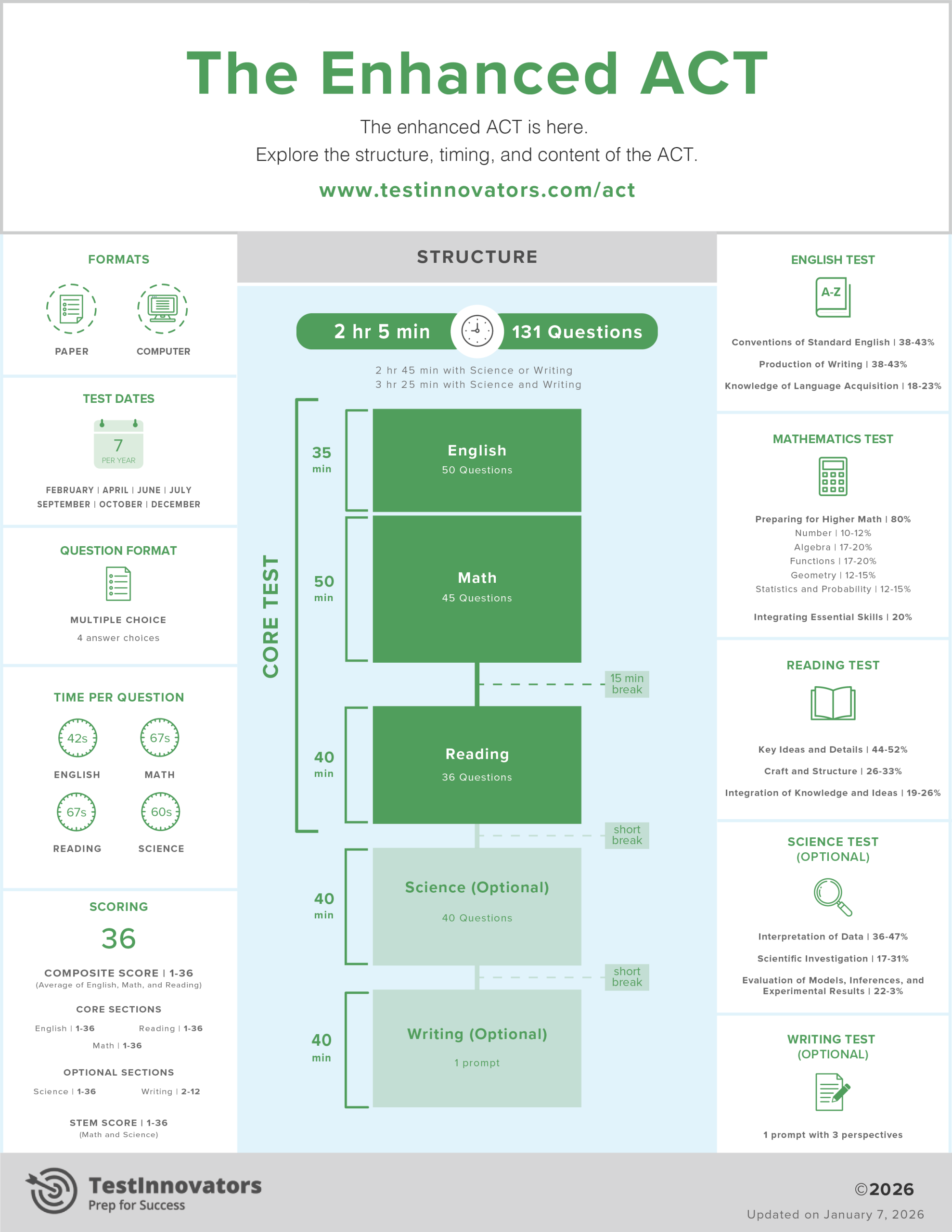 The ACT English Test is the first section of the ACT and is designed to assess students’ ability to revise and edit written texts. Students have 45 minutes to answer 50 questions. Rather than testing isolated grammar rules, the section is passage-based and asks students to step into the role of...