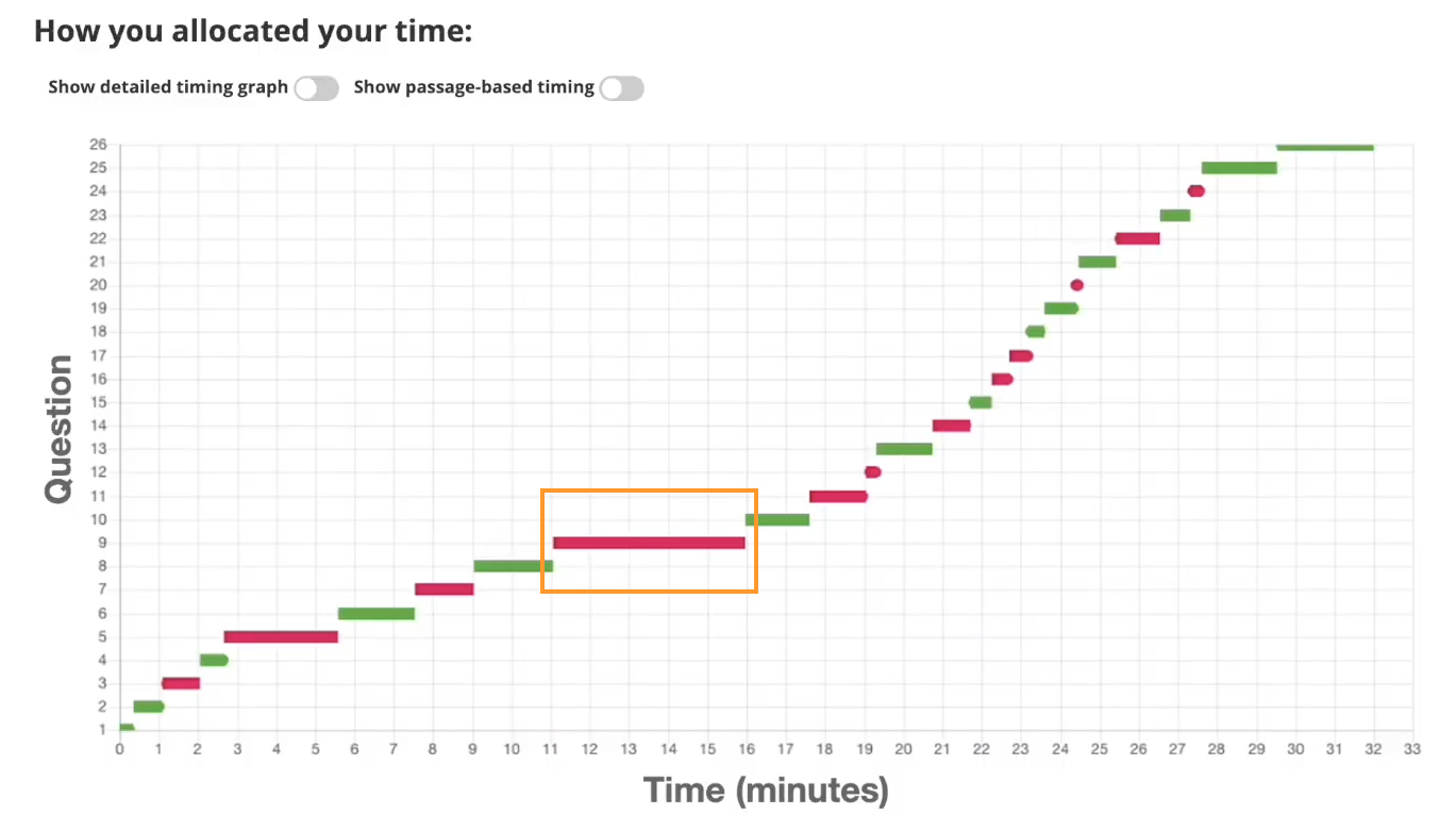 Ultimately, even if you got a question right, taking too long may still cost you points elsewhere in the section. Accuracy without efficiency can hold you back.
